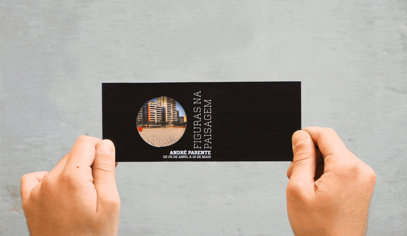o convite podia ser fechado de duas maneiras diferentes destacando pedaços distintos da paisagem, remetendo à interação do visitante com a exposição