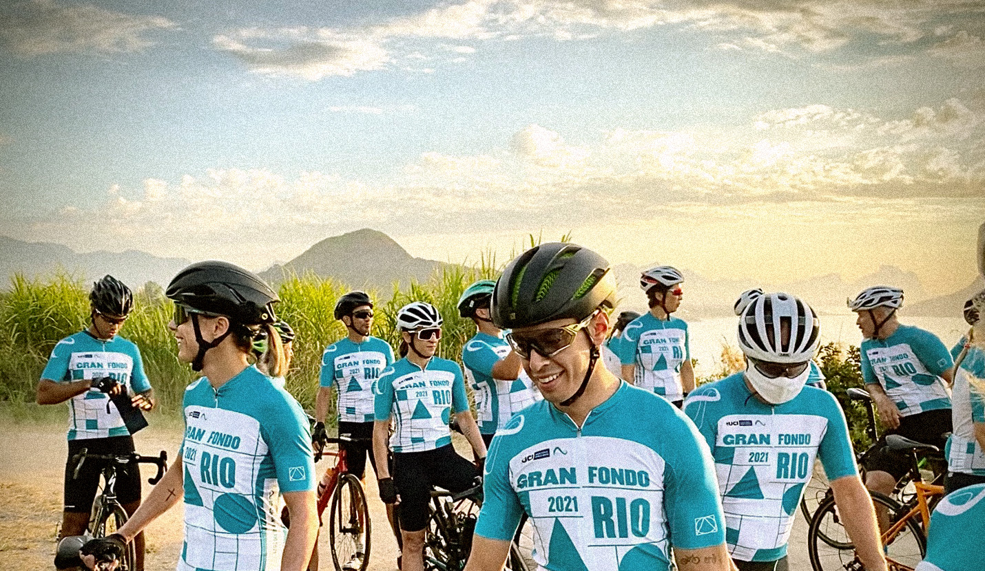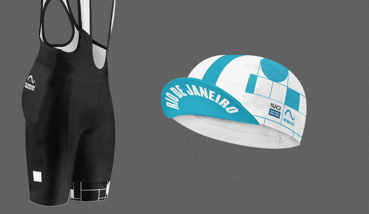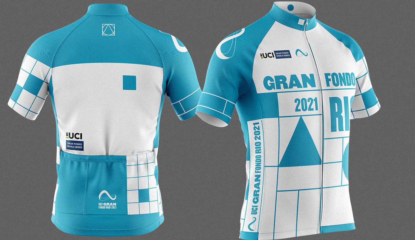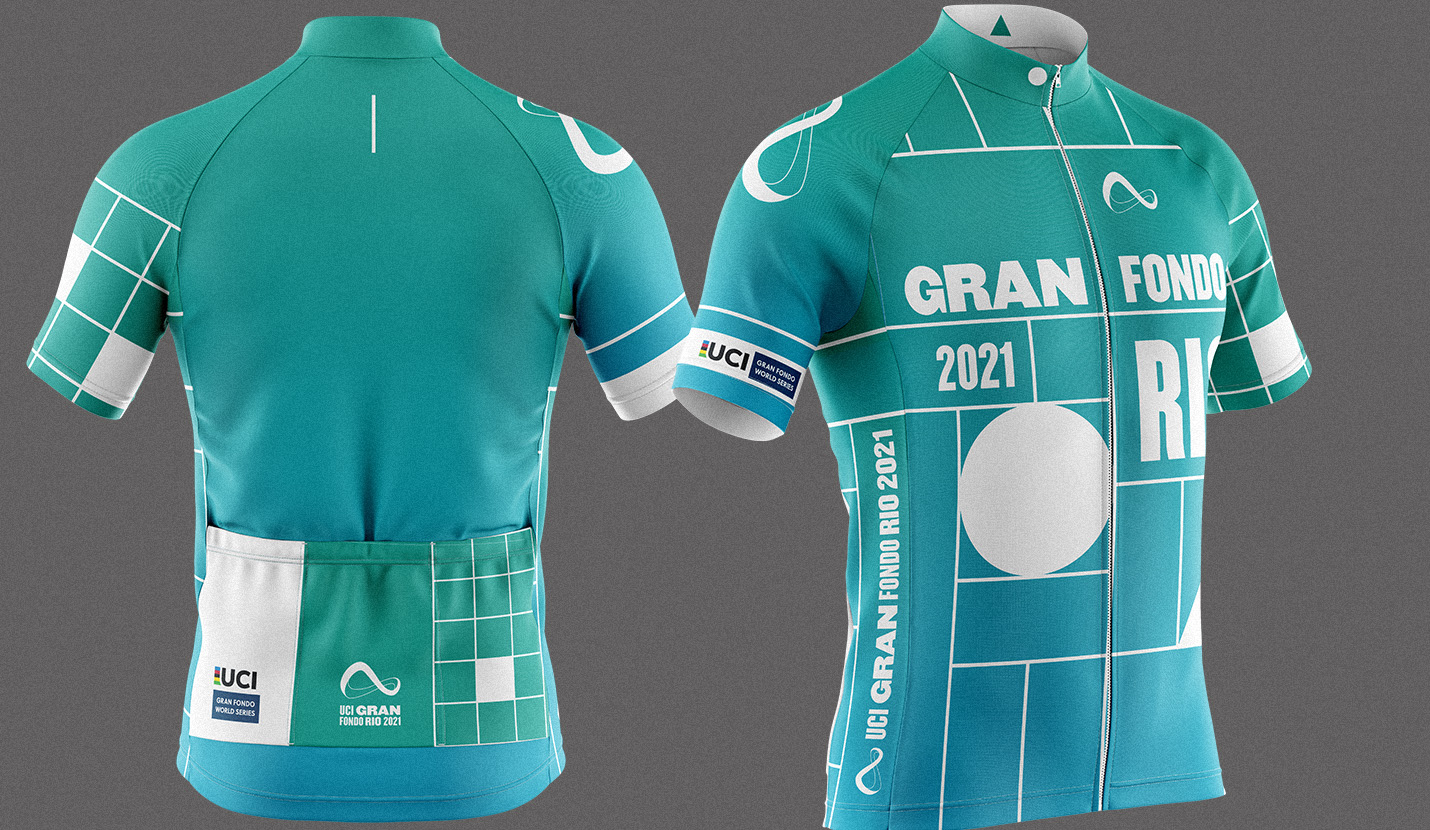 criação de camisas de ciclismo e outras peças de kit promocional do uci gran fondo rio 2021