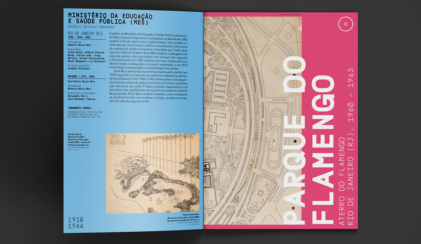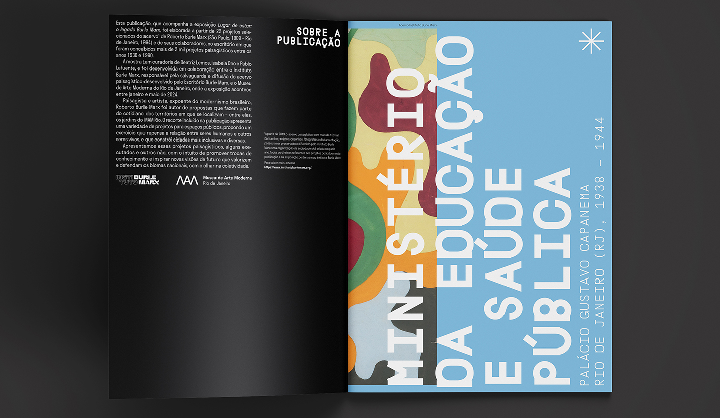 identidade visual e catálogo para exposição Lugar de Estar: o legado Burle Marx realizada no Museu de Arte Moderna do Rio em parceria com o Instituto Burle Marx